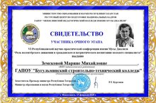 15 февраля 2018 года в г. Мензелинск среди педагогических работников школ и ПОО Республики Татарстан состоялась VI Республиканская научно-практическая конференция имени Мусы Джалиля «Роль волонтерского движения в гражданском и патриотическом воспитании молодого специалиста».