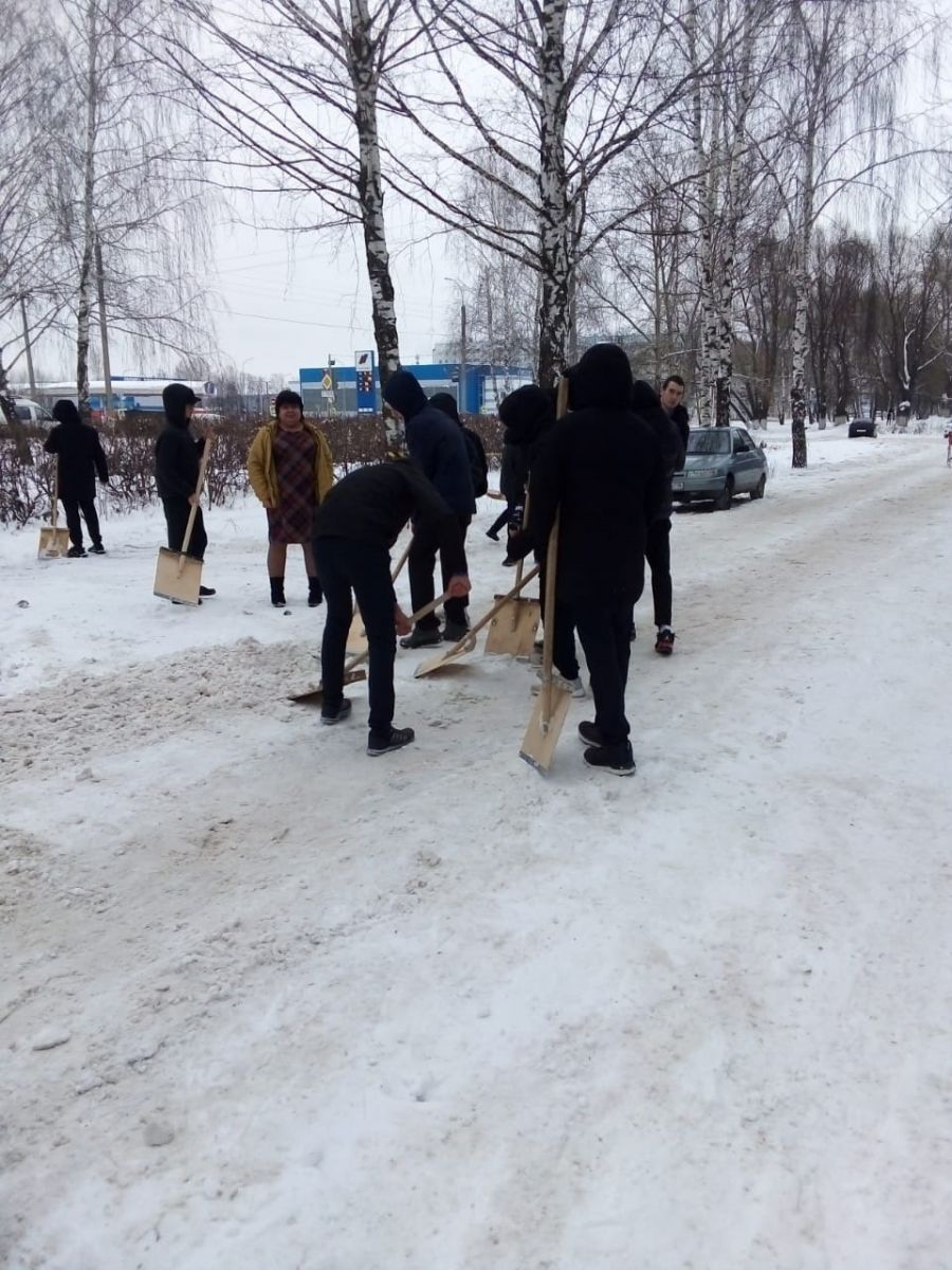 Первая уборка пешеходных мест от снега / Кар яву урыннарын беренче җыештыру