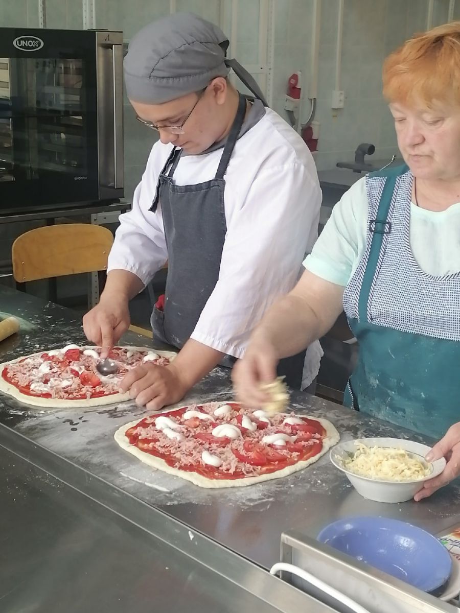 Во время учебной практики и производственного обучения студенты осваивают технологию приготовления пиццы. Наставник - мастер производственного обучения Брендюлева Ольга Николаевна.