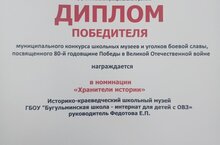 Наш школьный историко-краеведческий музей в марте 2025 года принял участие в муниципальном конкурсе-смотре школьных музеев, организованном Советом общественной организации ветеранов (пенсионеров) Бугульминского муниципального района при поддержке Управления образования Исполнительного комитета Бугульминского муниципального района Республики Татарстан, МБОУ ДО «Дворец школьников» Бугульминского муниципального района Республики Татарстан.