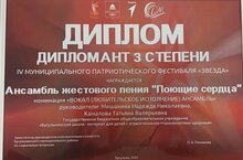 Особое внимание привлекло выступление ансамбля жестового пения «Поющие сердца» (руководители: Мишанина Н.Н, Камалова Т.В.). По итогам конкурса этот уникальный коллектив стал дипломантом третьей степени. Их творчество продемонстрировало высокий уровень мастерства и вдохновение великой историей нашей страны.