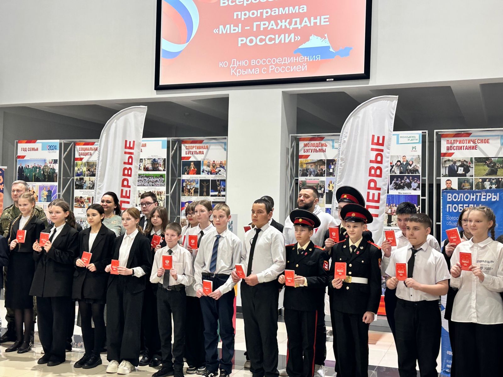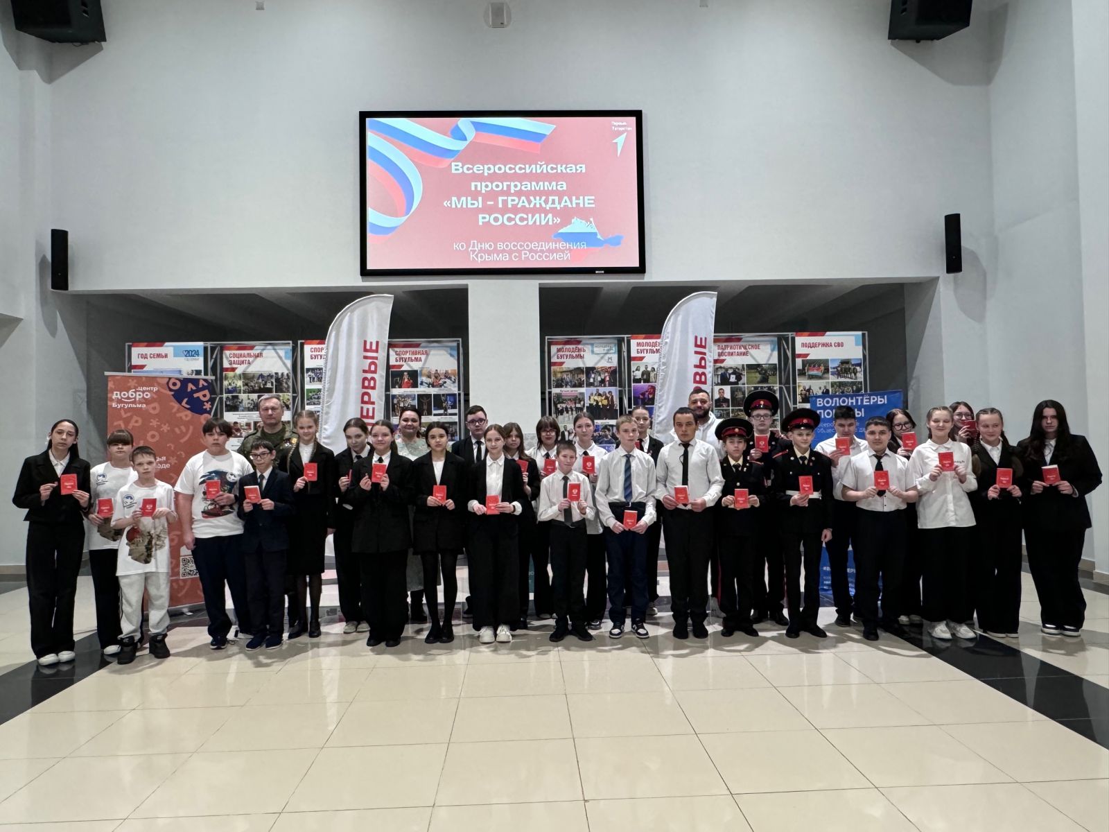В День воссоединения Крыма с Россией, во Дворце молодёжи состоялась торжественная церемония вручения обложек на паспорт и эксклюзивных значков Движения Первых в рамках Всероссийской программы «Мы - граждане России».
