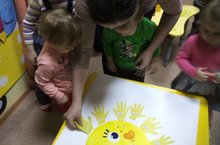Малыши 1 младшей группы АНО ОО "Прогимназия №14" пригласили своих мам на праздник "День матери", где для любимых - пели, танцевали, рассказывали им стихи. Мамы с удовольствием принимали участие в конкурсах, а так же выполнили вместе со своими детьми коллективную работу "Солнышко в ладошках". -