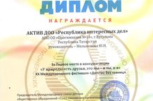 Поздравляем активистов детской организации АНО ОО «Прогимназия №14» «Республика интересных дел» с победой в XX Международном фестивале «Детство без границ» Молодцы! Так держать! -