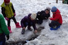 Вот и у нас на участке АНО ОО «Прогимназия №14» зажурчал ручей! Ребята помогли ему пробиться сквозь сугроб талого снега. И вот ручеёк набрал полную силу! Самое время запускать кораблики! Нашими кораблями были листочки, веточки, палочки. Ну и, конечно, корабли из бумаги, сделанные ребятами в технике оригами. Очень весело, с азартом прошли соревнования «Чей кораблик уплывёт дальше».