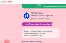 На Учи.ру *23 сентября — 26 октября* для дошкольников и учеников 1–9 классов будет проводиться бесплатная *Всероссийская олимпиада «Безопасные дороги».* Организаторами являются Минтранс России, ГУОБДД МВД России, Минпросвещения России, АНО «Национальные приоритеты», Учи.ру при поддержке национального проекта «Инфраструктура для жизни». Олимпиада входит в проект приказа перечня олимпиад Минпросвещения на 2025/26 учебный год. Соревнование направлено на: — реализацию Стратегии комплексной безопасности детей в Российской Федерации на период до 2030 года; — повышение уровня защиты несовершеннолетних от ДТП; — просвещение детей в вопросах, имеющих социальную значимость. Олимпиада состоит из ярких адаптивных заданий, каждое из которых озвучено. Ребята смогут познакомиться с правилами поведения на дороге и проверить свои знания. Чтобы каждый ребенок повысил свою осведомленность в вопросах безопасности дорожного движения, пригласите детей пройти олимпиаду: https://clck.ru/3P9LRv
