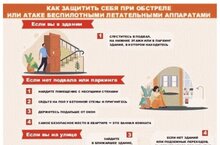 ЕСЛИ ВЫ В ЗДАНИИ: Отойдите от окна. Укройтесь в подвале либо в помещении с несущими стенами и без окон. Не пользуйтесь лифтом. Не использовать телефон при приближении БПЛА.