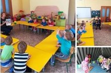 Воспитанники младшей группы для ёжика - без головы и ножек приготовили яблоки, грибы, груши и даже кузнечиков.