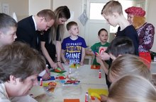 В рамках реализации муниципального проекта "Дружбатерапия" добровольцы города Бугульмы совместно с педагогом дополнительного образования АНО ОО «Прогимназия №14» Юлией Мельниковой и Общественным советом при ОМВД России по Бугульминскому району организовали и провели в детской больнице благотворительную акцию «Пасхальное волшебство». Неугомонные и веселые клоунессы подготовили для ребятишек, находящихся на стационарном лечении, необычный развлекательный досуг – народных игр, скороговорки, народные шутки и прибаутки. Малыши с радостью участвовали во всех забавах. Изюминкой акции стал мастер-класс по изготовлению 3D пасхального яйца для любимых мамочек и бабушек. А пасхальным волшебством для ребятишек стал приход добрых друзей волонтеров: депутата Бугульминского городского Совета Рината Мусина и старшего инспектора направления по связям со СМИ отдела МВД России по Бугульминскому району Дианы Галяувой. Гости и клоунессы подготовили для детей сюрприз: как по взмаху волшебной палочки в комнате появились многочисленные подарки: настольные игры, канцелярские принадлежности, раскраски, бумажные куклы с одеждой народов мира для вырезания.