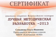 Вручение сертификата Лучшей методической разработки. 26.12.2013