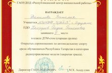Поздравляем Темирбулатова Наиля, занявшего II место и Данилова Виталия, занявшего III место в открытых соревнованиях по автомодельному спорту среди школьников в категории радиоуправляемых моделей (закрытая трасса) - педагог дополнительного образования Хайрулов Р.Р.