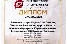 Грамота за активное участие в VIII Республиканском конкурсе "Путешествие к истокам".