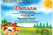 Поздравляем с победой юного воспитанника объединения "Электронно-вычислительная техника" Николая Просвиркина (руководитель Просвиркина Н.В.) в Региональном конкурсе творческих семейных проектов "Семейный очаг", 2017 г.