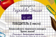 Подведены итоги Всероссийского творческого конкурса "Время знаний". 06.01.2016