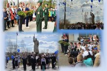 В этой торжественной обстановке, к памятникам были возложены венки и цветы, а в небо полетели символы мира - бумажные голуби! -
