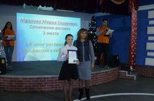 Лучшие творческие работы были представлены на суд жюри Центра занятости населения города Бугульмы и Бугульминского района. По результатам I отборочного тура этапа Конкурса победителем стала ученица 8 класса нашей школы Мазлова Мария. А по итогам республиканского этапа Конкурса она стала призёром и была приглашена вместе со своим руководителем Исаевой Г.С. для награждения в Казань. В торжественной обстановке было очень приятно получить с рук Министра труда Э.А.Зариповой диплом и ценный приз. Поздравляем Марию и желаем дальнейших творческих успехов!