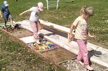 Ходьба по дорожкам может быть: обычной, на носках, на пяточках, на внешней и внутренней стороне стопы, ползание с опорой на руки и стопы, прыжки, бег. Ребенок ставит ноги по-разному, при этом по-разному работают мышцы, а нервные окончания получают различные сигналы и в результате получается тренировка нервно-мышечной системы. К тому же дети приучаются ходить друг за другом в колонне, не толкаться, сдерживать себя. -
