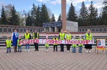В рамках года Защитника Отечества возле площади Вечного огня и Дворца Школьников прошла акция "Ребёнок - главный пассажир".