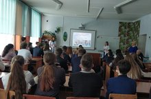 С целью информирования обучающихся о рынке образовательных услуг учреждений среднего профессионального образования, популяризации рабочих и инженерных профессий перед учащимися 9-х классов выступили представители БСТК. Они познакомили с государственным автономным профессиональным образовательным учреждением «Бугульминский строительно-технический колледж», рассказали, какие специальности и профессии среднего профессионального образования можно получить в данном колледже. Об условиях обучения рассказали студентки 2 курса по специальности «Лаборант-эколог».