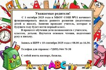 Внимание! Родители будущих первоклассников! Радуем вас отличной новостью! Школа раннего развития МБОУ СОШ №11 открывает запись на новый учебный год! 11.11.2025