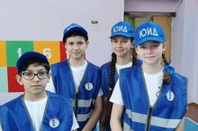 Участники муниципального этапа Республиканского конкурса "Безопасное колесо - 2022" Сергеев Егор, Сергеева Софья, Никанорова Ульяна и Саламов Файз.
