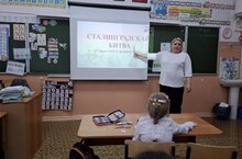 Ученики посмотрели исторический фильм, а после ответили на вопросы викторины "Сталинград. Правда или ложь?", стоя прослушали песню "На Мамаевом кургане тишина".