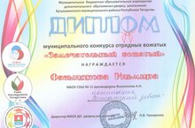 Во Дворце школьников состоялся ежегодный муниципальный конкурс вожатского мастерства «Замечательный вожатый». Конкурс проходил в два этапа: заочный и очный. На заочный этап конкурса вожатые предоставили свои методические материалы и портфолио. На очном этапе вожатые демонстрировали свои лидерские и организаторские способности, свои лайфхаки, тестировались по правовым и педагогическим вопросам детского движения. Нашу школу в конкурсе представила ученица 10 класса Фазылянова Ильмира, которая была удостоена Дипломом "Вожатский дебют"