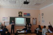 В 7 классе проходит литературный классный час с просмотром художественного фильма "Мужество останется в веках" -