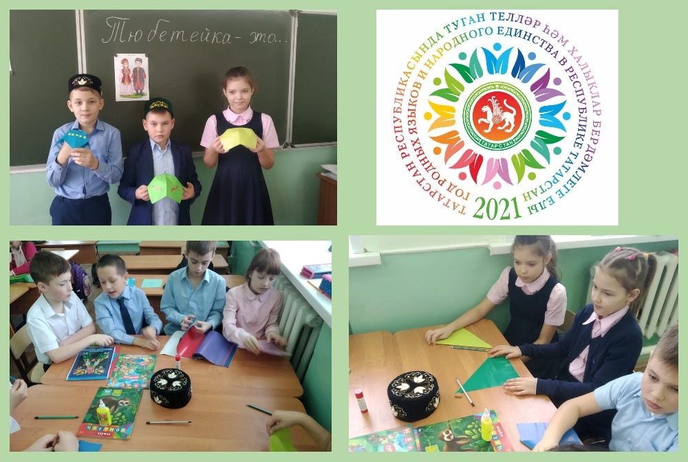Сегодня в 3 классе прошло мероприятие, приуроченное к "Году Родных языков и народного единства в РТ". Ребята познакомились с татарским головным убором "Тюбетейка" и проявили свои умения в её изготовлении из бумаги с помощью техники "Оригами"
