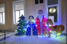 Новогодняя атмосфера царит повсюду: светящиеся гирлянды украшают фасад здания, снежинки переливаются на солнце, создавая волшебное настроение праздника. Такая уютная и привлекательная фотозона станет отличным местом для фотосессий и семейных фотографий.