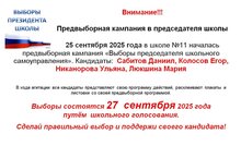 25 сентября 2025 года в нашей школе №11 началась предвыборная кампания "Выборы председателя школьного самоуправления 2025"