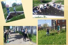 Будни трудового лагеря 03.06.2017Работа в трудовом лагере кипит. Все ребята разделены на небольшие группы, где каждый получил своё задание: мальчики подстригали деревья, собирали мусор, часть девочек сажали цветы на клумбу, а другая часть подметала тротуар.