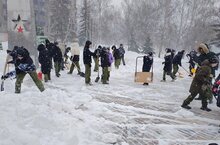 В течении недели кадеты очищают от снега мемориальный комплекс 352-й стрелковой дивизии