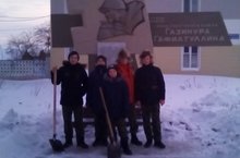 Юнармейцы 7А класса расчистили от снега памятник на улице Героя Советского Союза Газинура Гафиатуллина.