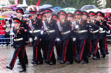 Кадеты промёрзшие, но счастливые с честью прошли, чеканя шаг по площади, по которой 70 лет назад проходили с победой их деды и прадеды очистившие мир от фашизма, осознавая, что этот мир им придётся беречь и защищать.