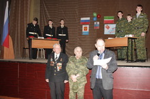 В кадетской школе этот день принято отмечать «Конкурсом патриотической песни». По традиции, в празднике участвует вся школа. Каждый класс представляет свою песню. В этом году это была инсценированная песня, которую педагог дополнительного образования Шарова В.М. и офицеры-воспитатели поставили в каждом классе. В качестве членов жюри были приглашены участник ВОВ Шафиков Х.Г. и воины-интернационалисты Хасаншин Р.Г. и Окладов А.К.. Нелёгкими были решения жюри, так как все классы от пятого до десятого представили очень интересные номера, начиная от героев Древней Руси, которых представили восьмиклассники. Песню воинов Отечественной войны 1812 года «Солдатушки» исполнили шестиклассники. Песню героев ВОВ «Катюша» представили кадеты пятого класса. И так до современных песен о героях воинах-интернационалистах, полюбившихся всем кадетам – десантниках. Выделились ребята девятых классов: они исполнили песни, которые хранят память о всех героях и «Былых времён» и обычных «пацанах», чуть старше их самих, но сумевших с оружием в руках защитить своих близких от врага. А когда кадет 8 класса Иляуддинов Слава стал петь гимн десантников - песню «Синева», все присутствующие встали и в едином душевном порыве, еле сдерживая слёзы вспомнили своих близких, друзей, родных и знакомых, погибших и здравствующих героев-воинов. В.В. Путин, сегодня говоря об этом празднике отметил, что этот праздник - «наша генетическая память». Добавлю, что это память сердца, которую кадеты достойно пронесут по жизни, продолжив подвиги отцов и прадедов.