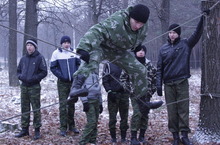 Кадет должен уметь многое. В том числе хорошо чувствовать себя в полевых условиях, уметь преодолевать большие расстояния, развести огонь, переправиться через быструю речку, взобраться на дерево или на гору, даже вязать различные узлы.