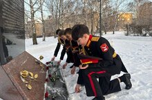 В День Героев Отечества, Первые Бугульминской кадетской школы-интерната им. Гафиатуллина вместе с лидером направления «Патриотизм и историческая память» Алексеем Травниковым почтили память Героя Советского Союза Газинура Гафиатуллина, возложив цветы к его памятнику.