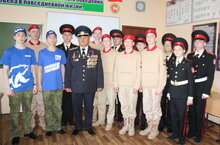 Ребята подготовили литературно-музыкальную гостиную о подвиге наших воинов, получили "Урок истории" и рассказ нашего героя о мировой обстановке и военных операциях в Чечне и современной на Украине, послушали песни под гитару в исполнении гостя и совместно исполнили гимн Юнармии "Служить России"
