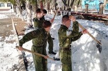 Бугульминские кадеты активно участвуют в уборке от снега и мусора прилегающей к школе территории