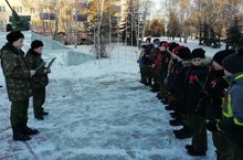 Накануне праздника, кадеты 7 класса очистили от снега памятник 352-й стрелковой дивизии