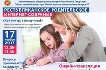 "Министерство образования и науки Республики Татарстан совместно с Общественным советом при МОиН РТ запускают новый проект для родителей "Республиканское родительское интернет-собрание. Как учить, а не мучить?" по актуальным вопросам воспитания. Подключайтесь, задавайте свои вопросы специалистам по адресу roditelirt@mail.ru. Он-лайн трансляция на сайте киу.рф 17 ноября 2017 года с 12.00 до 13.30."