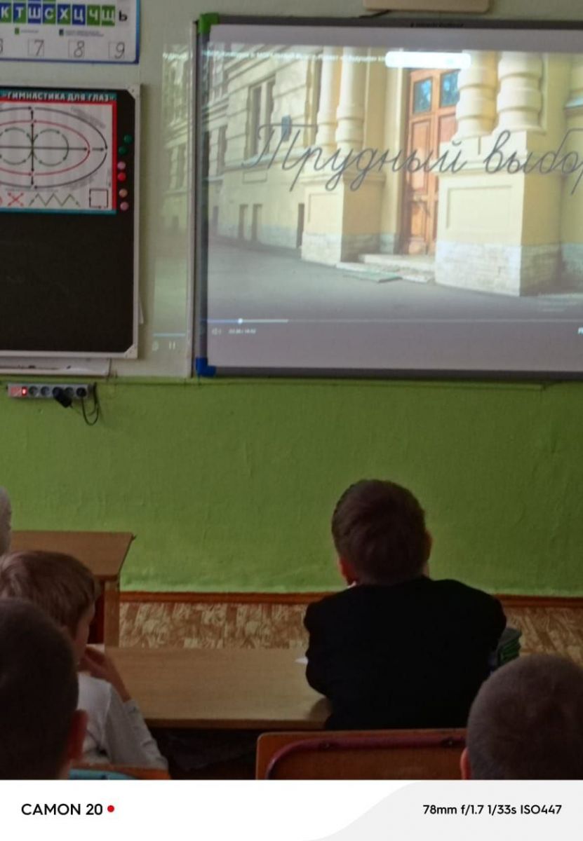 В рамках реализации Всероссийского проекта «Киноуроки в школах России», учащимся был показан фильм «Трудный выбор».