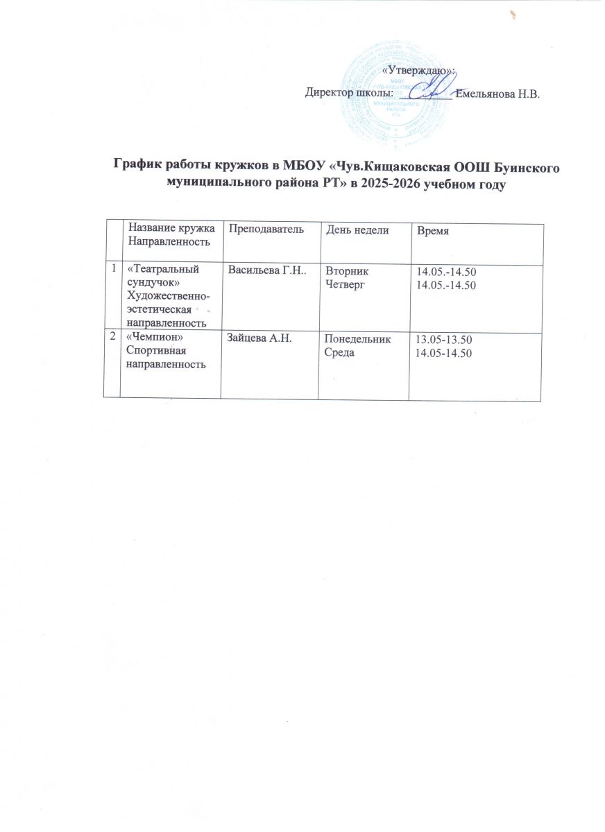 Расписание школьных кружков на 2025-2026 учебный год