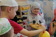 Сегодня воспитанниками средней группы была показана сказка на новый лад "Маша в гостях у медведя" на татарском языке.
