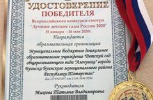 Подведены итоги мероприятия «Всероссийский конкурс-смотр "Лучшие детские сады России 2020"». В мероприятии приняло участие 16372 участника. МБДОУ «Аленушка» вошел в число 500 лучших детских садов России и признан Победителем данного конкурса.