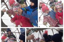 Ребята младшей группы МБДОУ "Аленушка" совместно с родителями приготовили корм для птиц, так называемые эк-кормушки, которые повесили на территории детского сада. Зима. Вновь наступили холода. Смотришь на улицу из дома и думаешь: «Какая красота!». Но выходишь, и сразу все хорошие мысли улетают из головы: мороз, щеки покраснели, х-о-олодно! А представьте, каково сейчас птичкам! Без корма многие погибают. Пора, пора подкармливать пернатую братию, потому как под снегом, найти пропитание весьма сложно.
