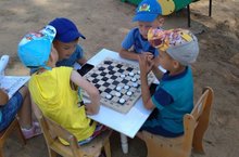 Со старшей группы мы начинаем учить детей играть в шашки. Ребенка учим правилам расположения доски, расстановки шашек, правилам ходов и взятий. Развиваем произвольное внимание и мышление. Воспитываем умение играть, уважая партнера, неукоснительно соблюдать правила игры. В режимных моментах дети с огромным желанием играют в шашки не только в здании детского сада, но и на свежем воздухе. -