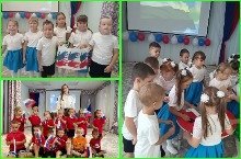 Дети смотрели мультипликационный ролик о главных символах России, рассказывали стихи, отгадывали загадки, исполняли народный танец. Помимо этого была проведена «творческая пятиминутка» на знание цветов флага и их последовательности. Все воспитанники показали отличную смекалку и сообразительность!