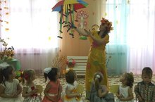 На утреннике дети рассказывали стихи об осени, пели песни, танцевали. Вместе с хозяйкой праздника играли в игры.